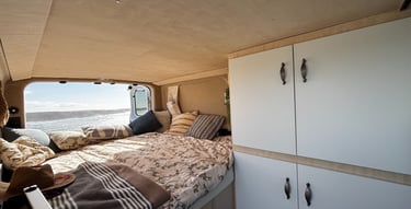 liebevoll selbst ausgebaute Vans, reduziert auf das Wesentliche –